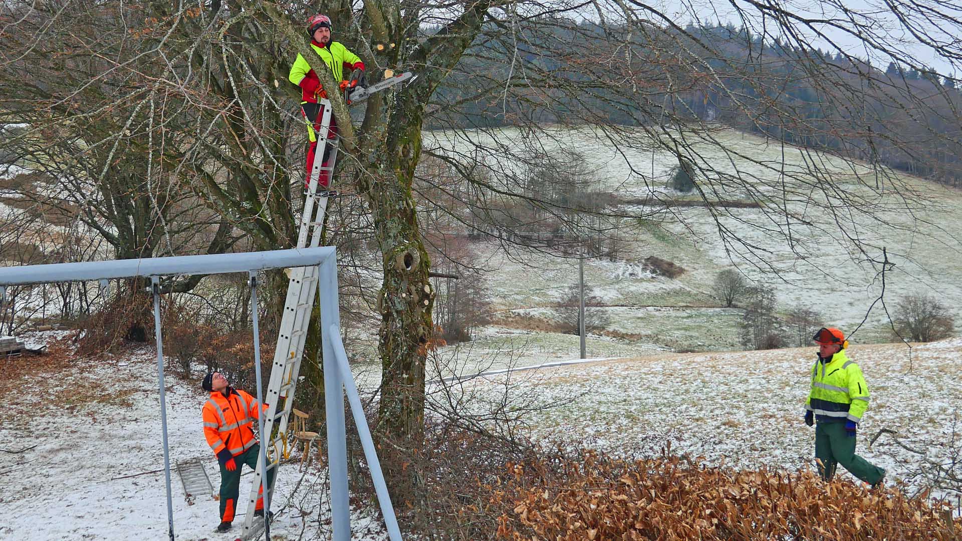Mehrere Mal im Jahr treffen sich die Vereinsmitglieder auf dem NaturFreundehaus zum Arbeitseinsatz rund um das Haus. Vom 02. – 04.01.2026 stand Holzmachen auf dem Plan.